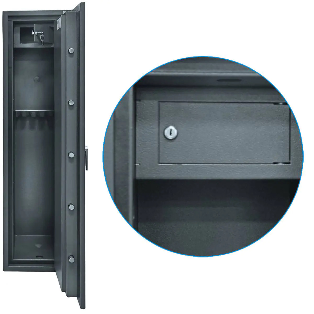 Oferujemy opcję rozbudowy sejfu Valberg ASG WS3 EL o wewnętrzny sejfik, który może być zabezpieczony osobnym kluczem. Ta dodatkowa funkcja, dostępna za nominalną opłatę, wprowadza dodatkowy poziom ochrony, tworząc specjalną przestrzeń na wyjątkowo ważne przedmioty, kluczowe dokumenty lub amunicję, zwiększając ich bezpieczeństwo. Stanowi to atrakcyjną opcję dla tych, którzy pragną podnieść poziom użyteczności oraz standardy zabezpieczeń swojego sejfu.